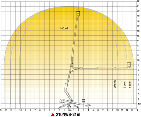 De 210 WH hoogwerker is een zeer compacte, praktische en veilige machine. Met een transportlengte van 7,2m en een werkhoogte van 21m, kan deze maar liefst een zijdelings bereik van 13,5m bieden. Groot voordeel bij deze hoogwerker is dat je volledig binnen de steunvoeten blijft tijdens het draaien met de hoogwerker, waardoor er geen hinder is op straat voor passerende voertuigen.